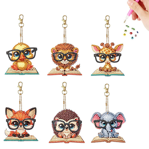 6Pcs Acrylic Double Sided Animals Diamond Art Keyring Diamond Art Craft Keychain
