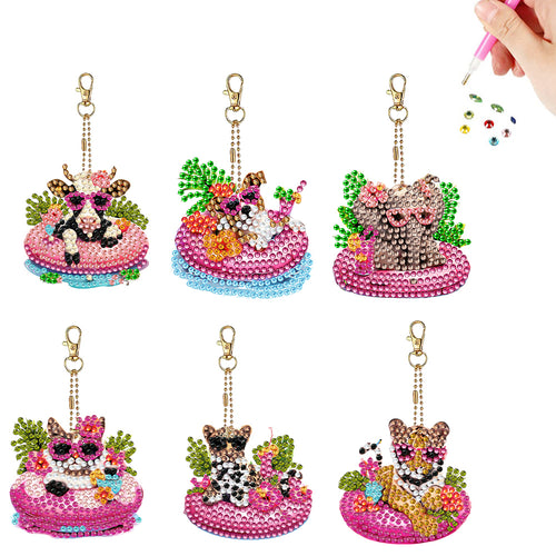 6Pcs Double Sided Cartoon Diamond Painting Art Keychain Pendant DIY Crafts Decor