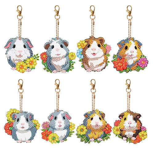 8PCS Double Sided Round Diamond Painting Art Keychain Pendant for Adult(Hamster)