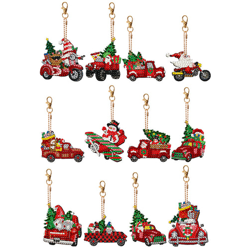 12PCS Double Sided Diamond Painting Art Keychain Pendant for Beginner(Red Truck)