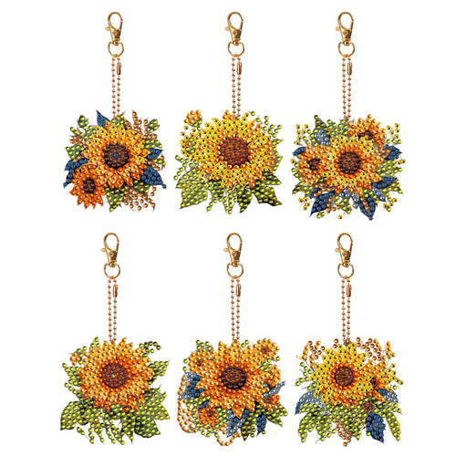 6 PCS Double Sided Diamond Painting Art Keychain Full Drill Keyring (Sunflower)