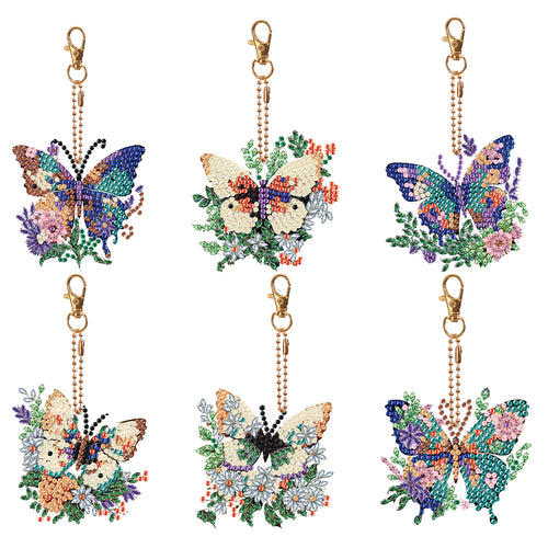 DIY Diamond Art Keychains Double Sided 5pcs Gem Keychains(Butterfly)