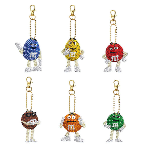 6pcs DIY Double Sided Diamond Keychains Chocolate Beans Craft for Gifts (YS119)