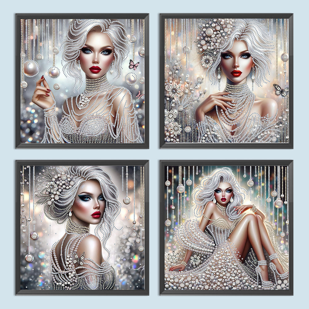 4Pcs Partial Special Diamond Painting Set - Elegant lady (30*30CM)