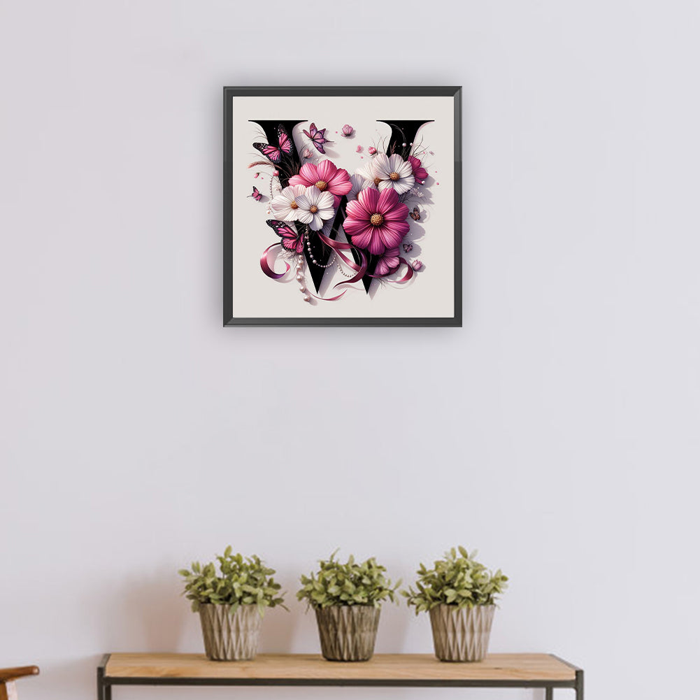 Diamond Painting - Full Round - Daisy Butterfly Letter W (30*30CM)