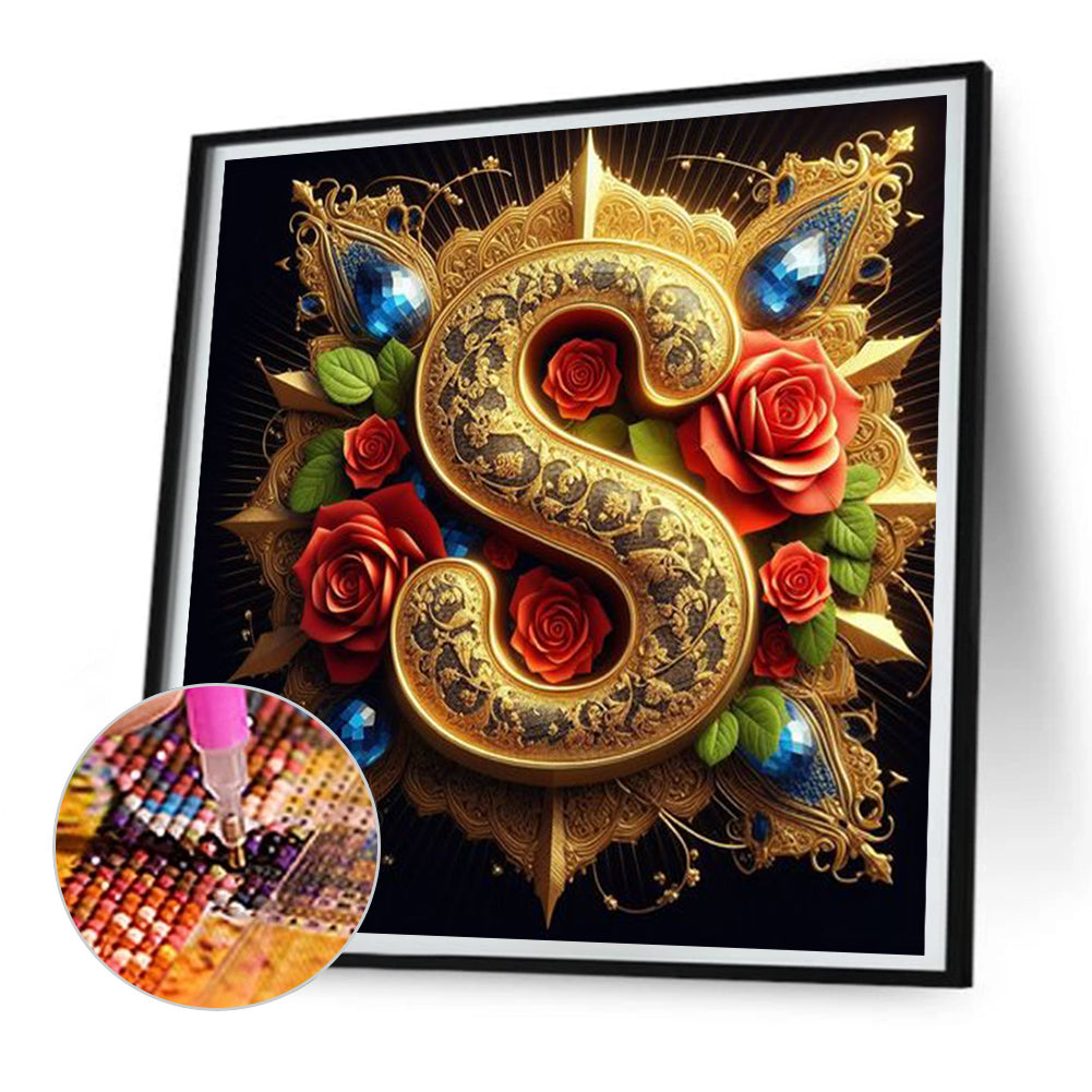 Diamond Painting - Full Round - Flower letter-S (30*30CM)