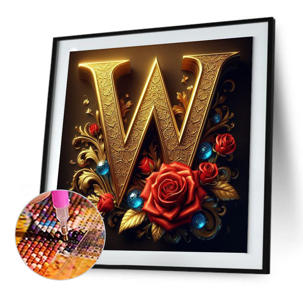Diamond Painting - Full Round - Flower letter-W (30*30CM)