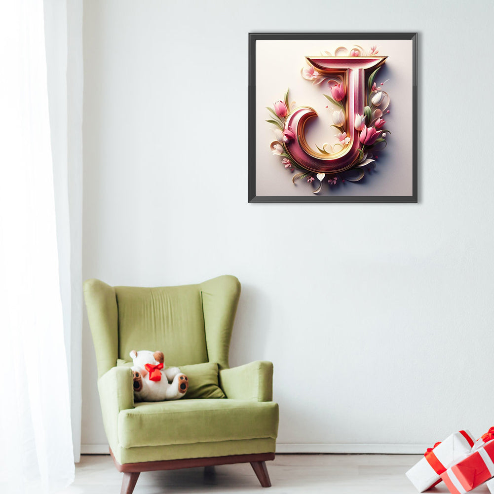 Diamond Painting - Full Round - Pink flower letter J (40*40CM)