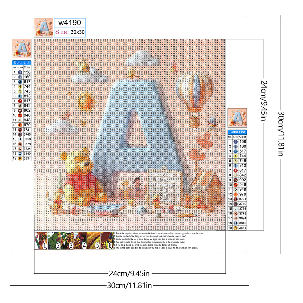 Diamond Painting - Full Round - Winnie the Pooh's 26 Letters A (30*30CM)