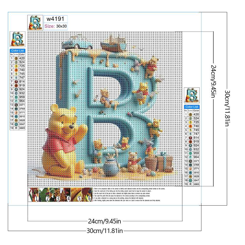 Diamond Painting - Full Round - Winnie the Pooh's 26 Letters B (30*30CM)
