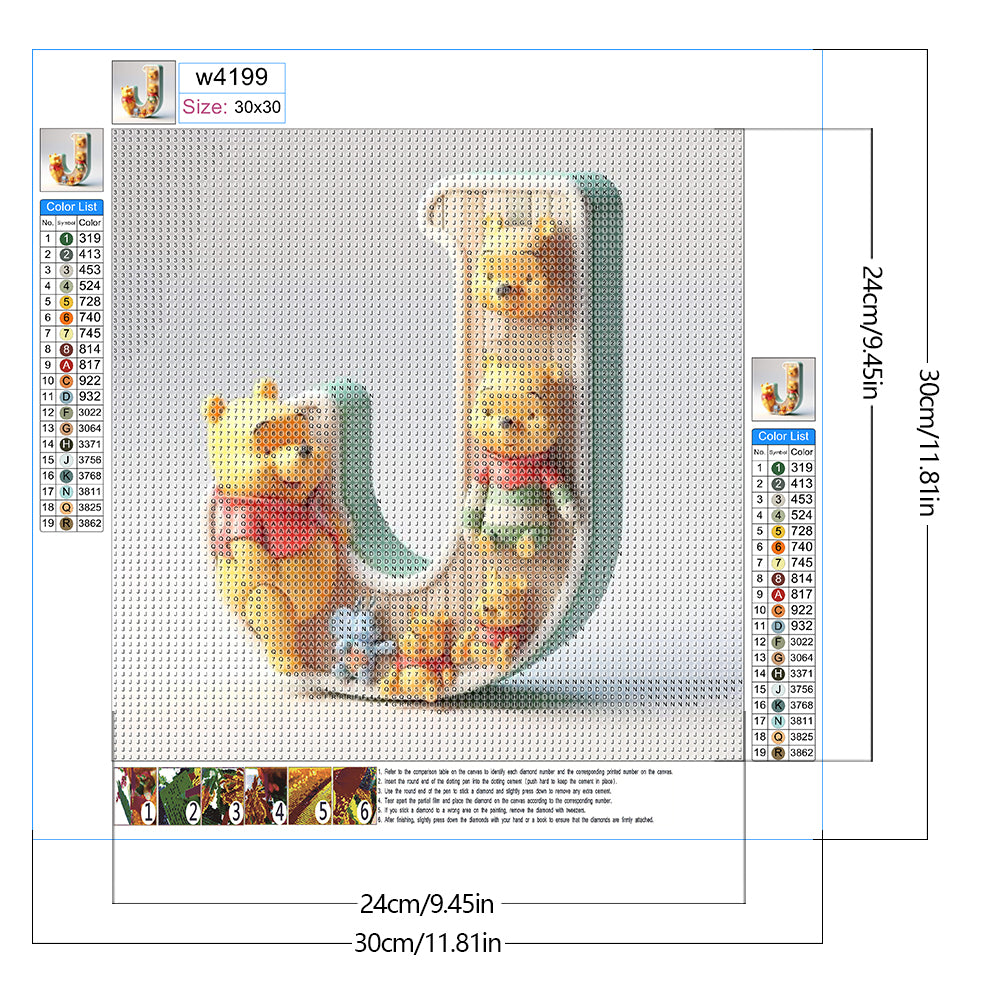Diamond Painting - Full Round - Winnie the Pooh's 26 Letters J (30*30CM)