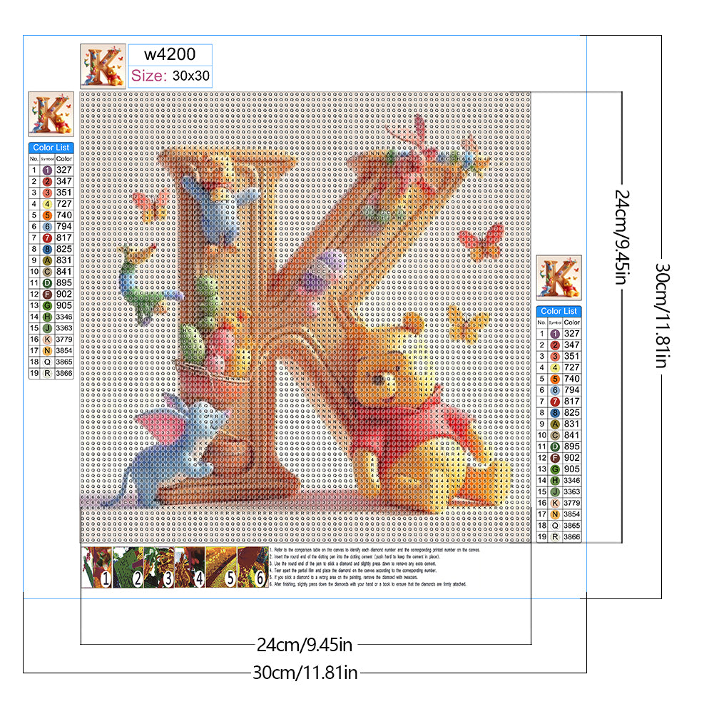 Diamond Painting - Full Round - Winnie the Pooh's 26 Letters K (30*30CM)