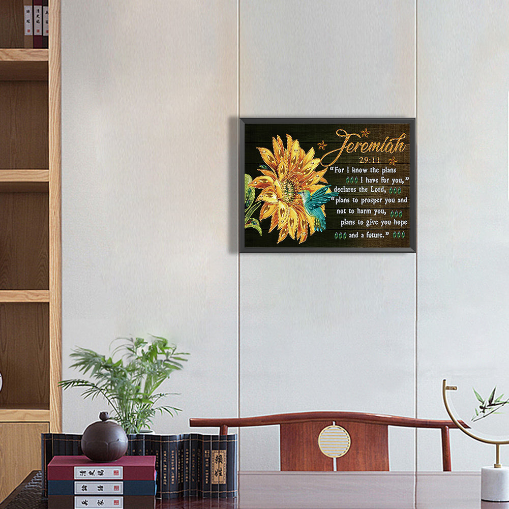 Diamond Painting - Partial Special Shaped - Sunflower hummingbird English (30*40CM)