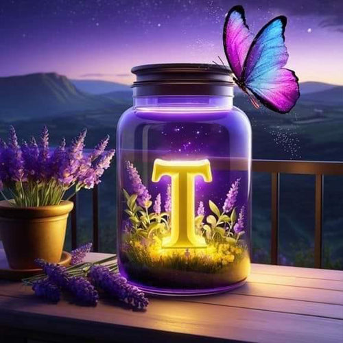 Diamond Painting - Full Round - Fantasy glass bottle butterfly letter T (40*40CM)