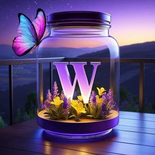 Diamond Painting - Full Round - Fantasy glass bottle butterfly letter W (40*40CM)