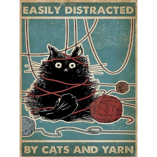 Diamond Painting - Full Round - Cat and yarn ball calligraphy and painting (30*40CM)