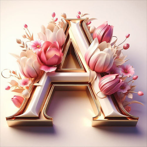 Diamond Painting - Full Round - Pink flower letter A (40*40CM)