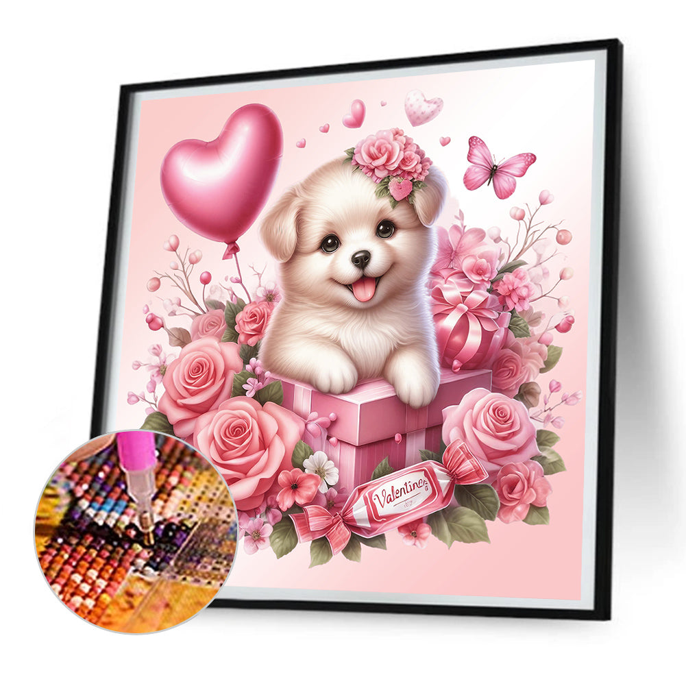 • Load image into Gallery viewer, Diamond Painting - Full Round - love rose puppy (30*30CM)