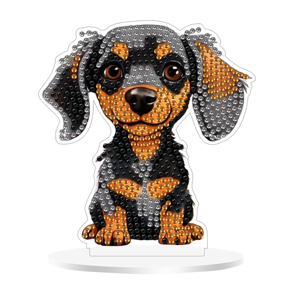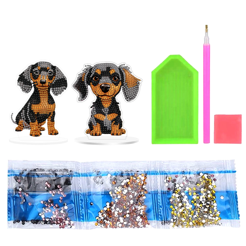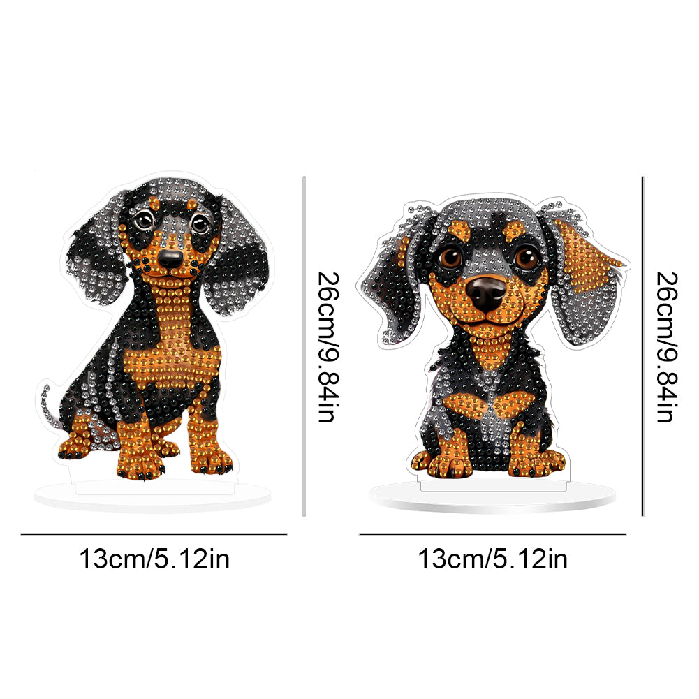 2Pcs Acrylic Special Shaped Cute Dachshund 5D DIY Diamond Art Tabletop Decorations Diamond Painting Desktop Decorations for Home