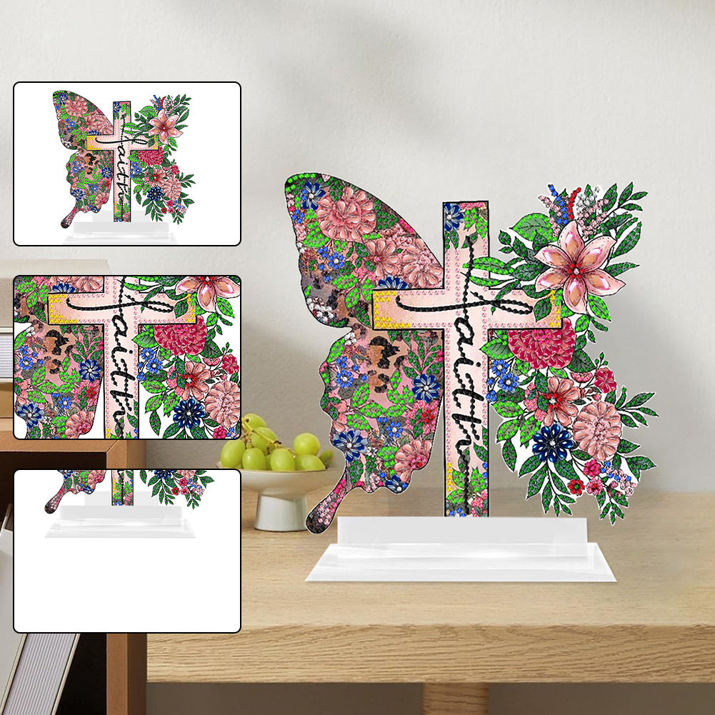 Acrylic Butterfly and Faith Table Top Diamond Painting Ornament Kits for Home