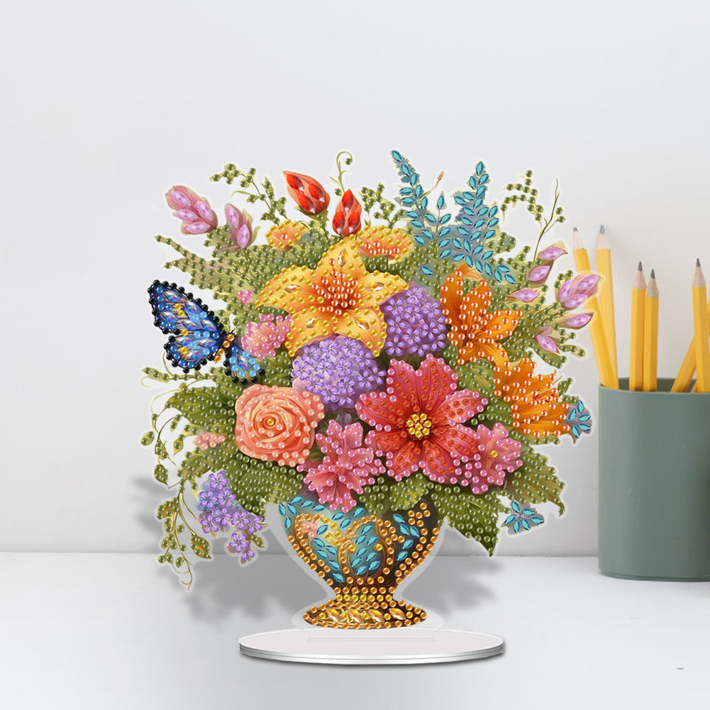 5. After the drilling is completed, apply double-sided tape to the bottom of the ornament, tear off the double-sided tape, insert it into the base.