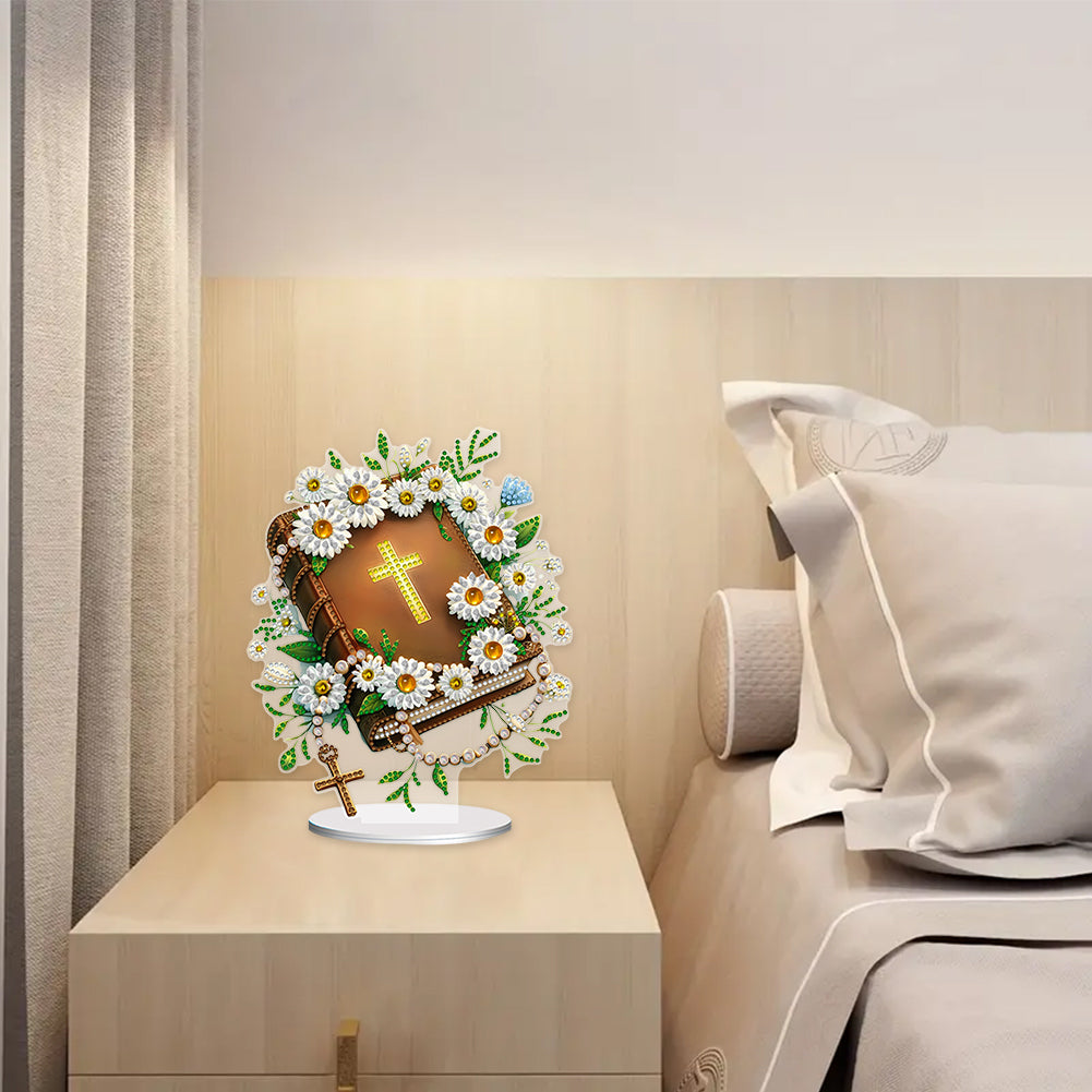 Acrylic Special Shape Bible Desktop Diamond Art Kits Rhinestones Desktop Ornaments 5D DIY Diamond Art Tabletop Decorations
