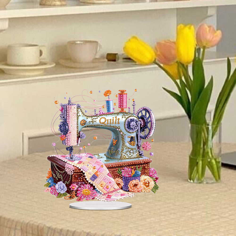 Acrylic Special Shape Flower Sewing Machine Desktop Diamond Art Kits 5D DIY Diamond Art Tabletop Decorations Bedroom Table Decor