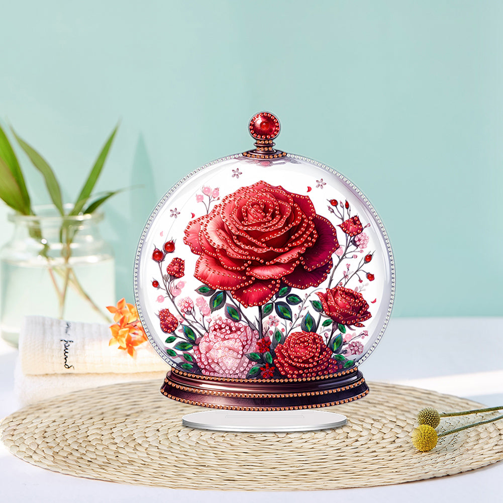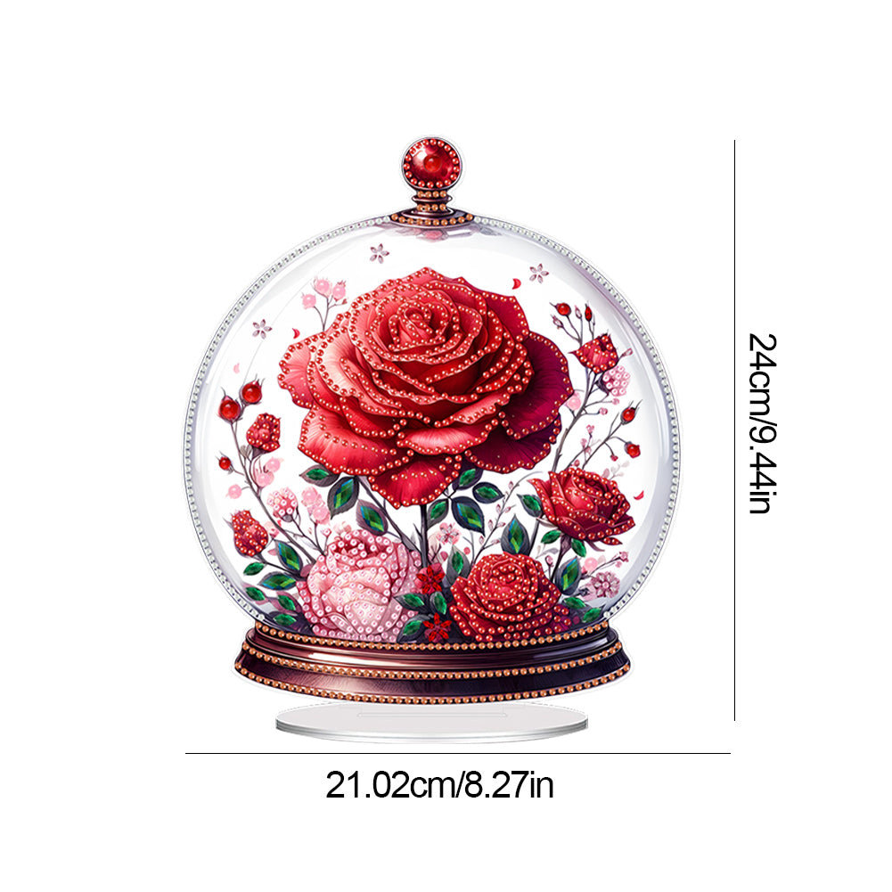 Acrylic Special Shape Glass Covered Red Rose Diamond Painting Desktop Ornaments
