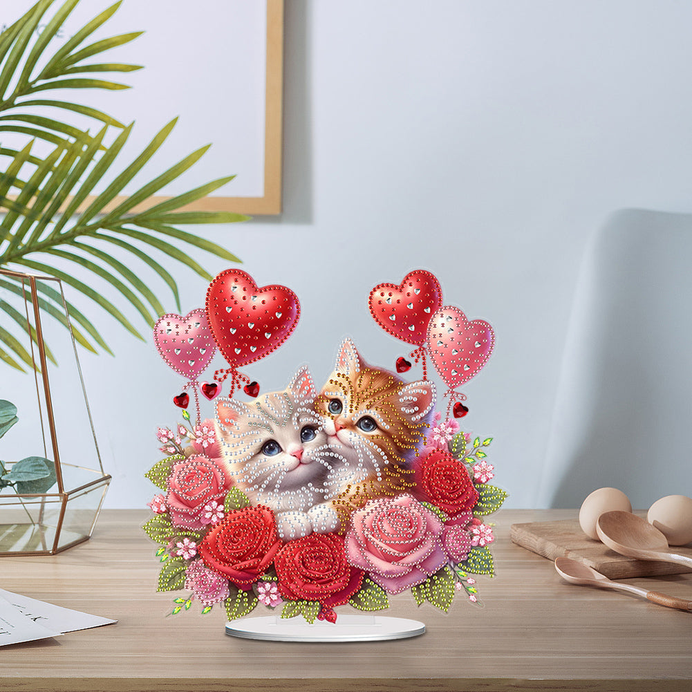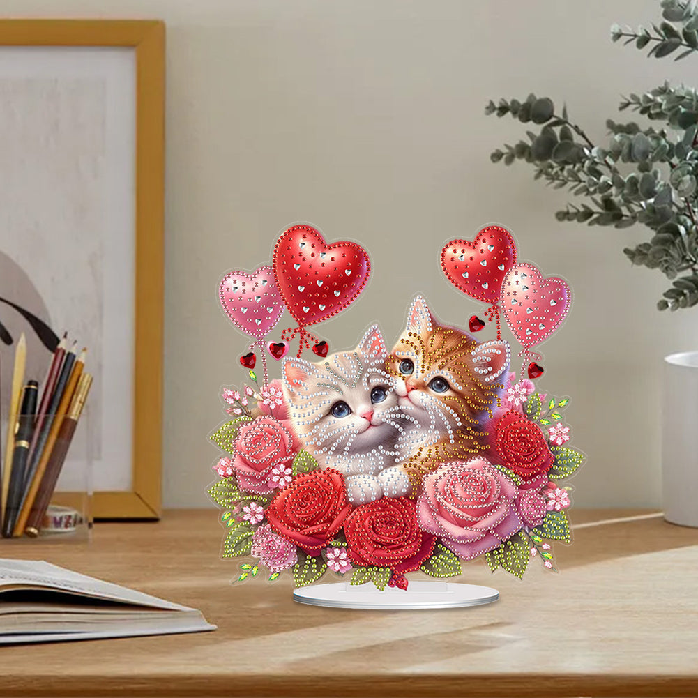 Acrylic Special Shape Hugging Cat Diamond Painting Desktop Ornaments for Adults