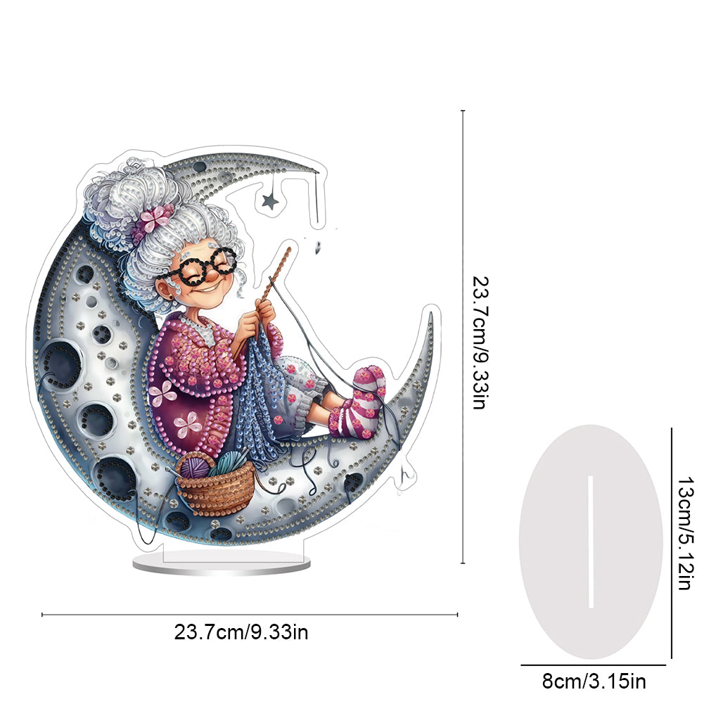 Acrylic Special Shape Moon Granny Diamond Painting Desktop Ornaments for Home