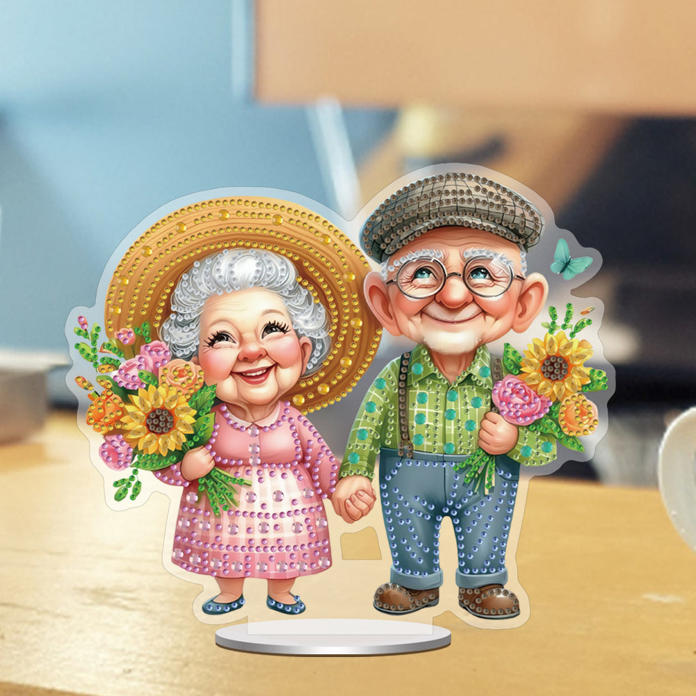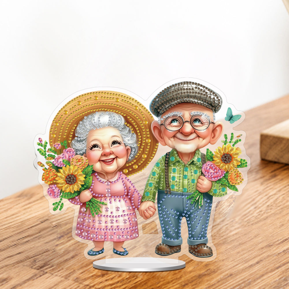 Acrylic Special Shape Old Couple Diamond Painting Desktop Ornaments for Home