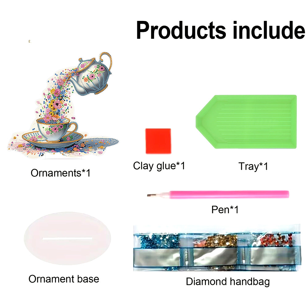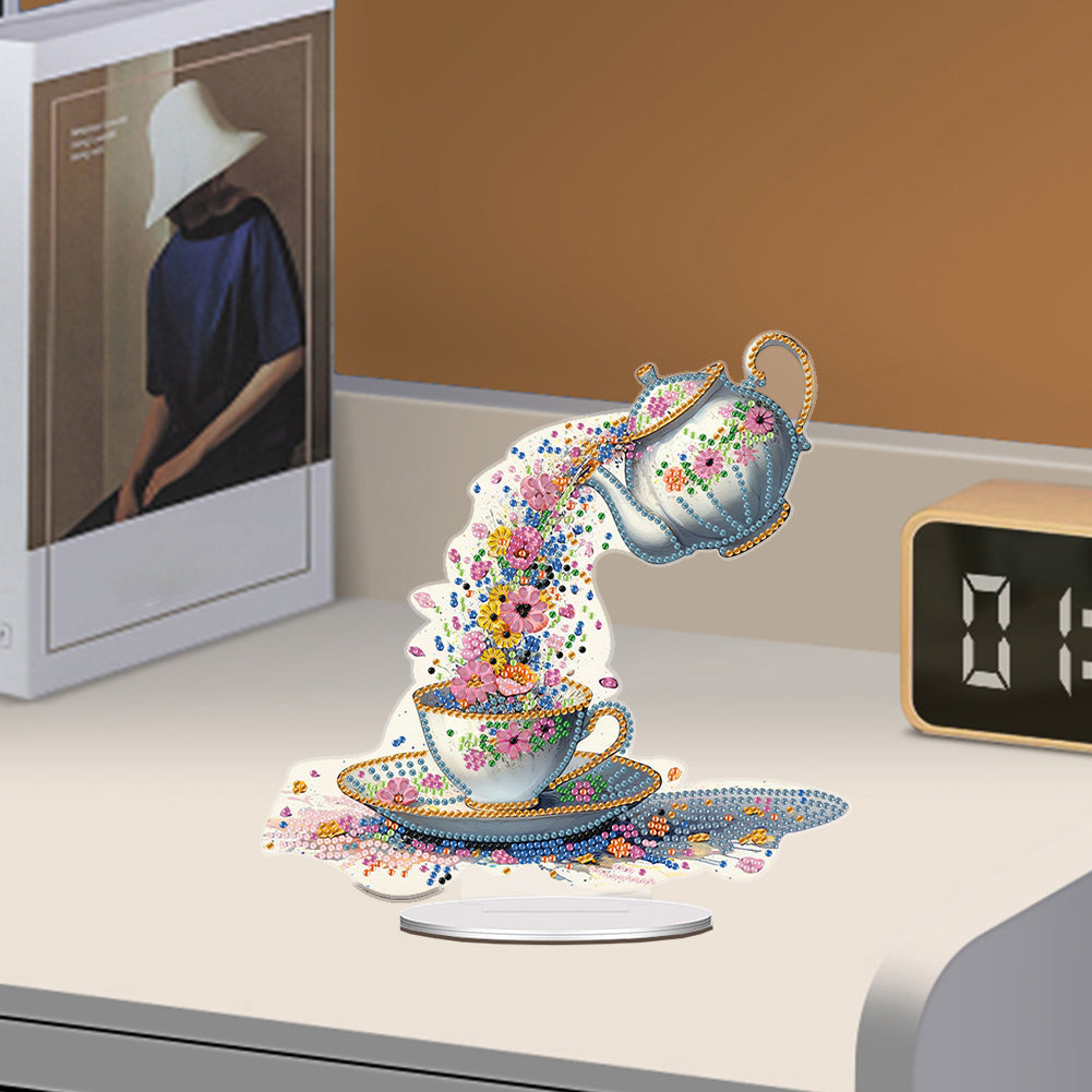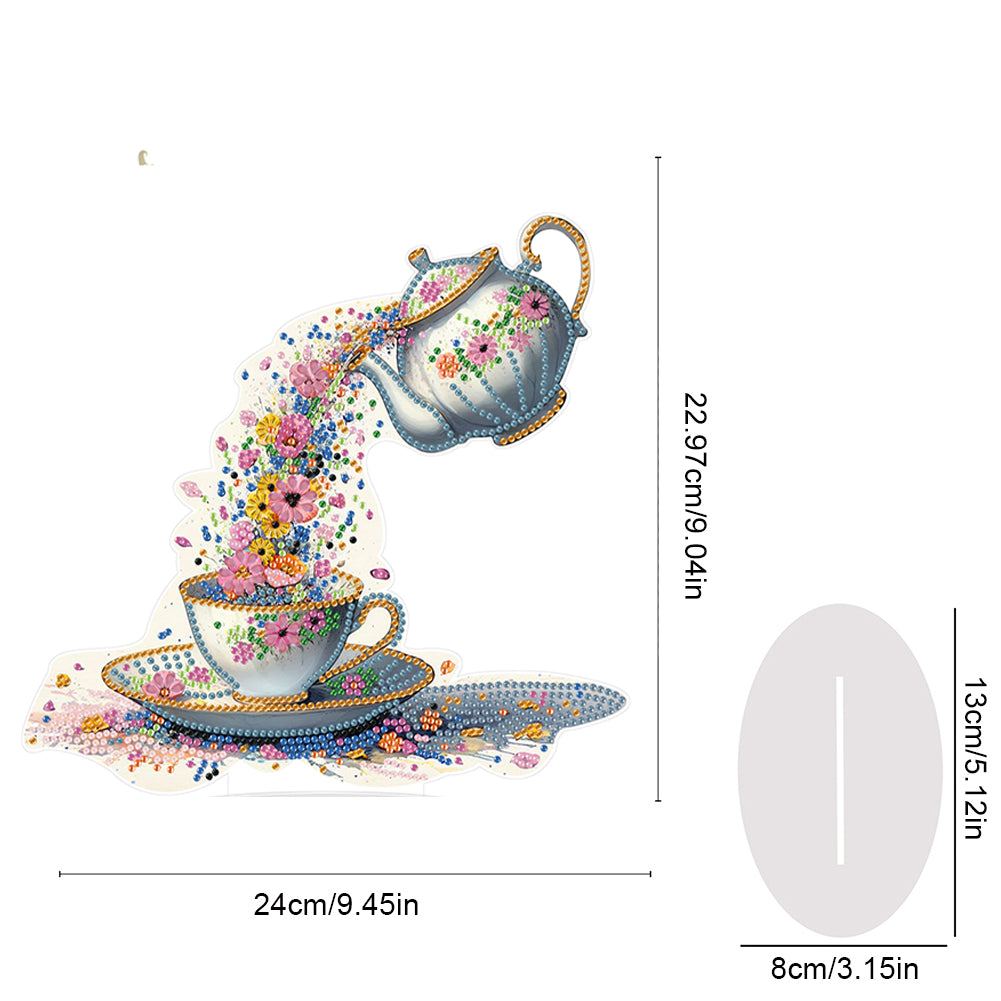 Acrylic Special Shape Teacup Flower Diamond Painting Desktop Decorations