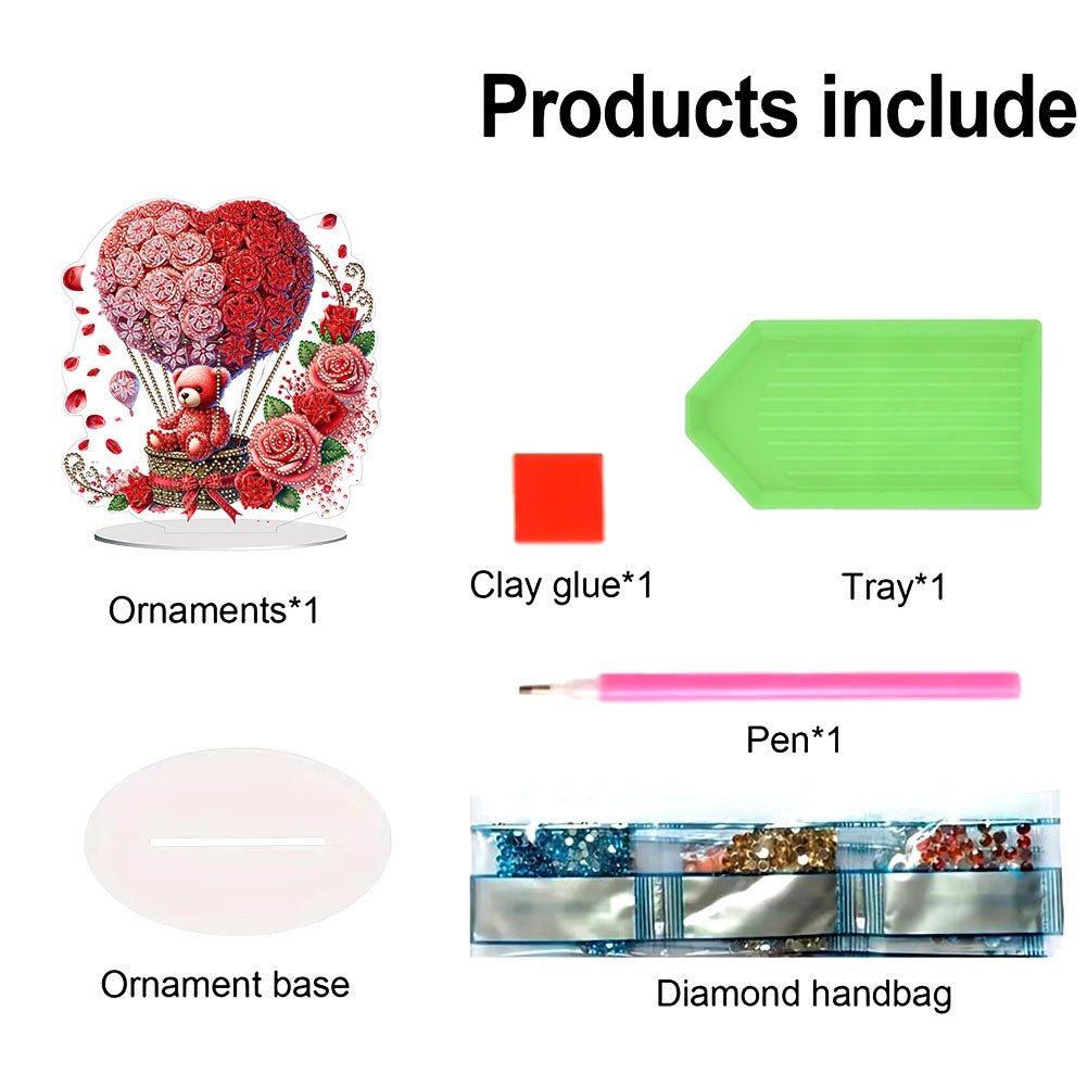 Acrylic Special Shaped Romantic Valentines Day Desktop Diamond Art Kits 5D DIY Diamond Art Tabletop Decorations for Office Decor