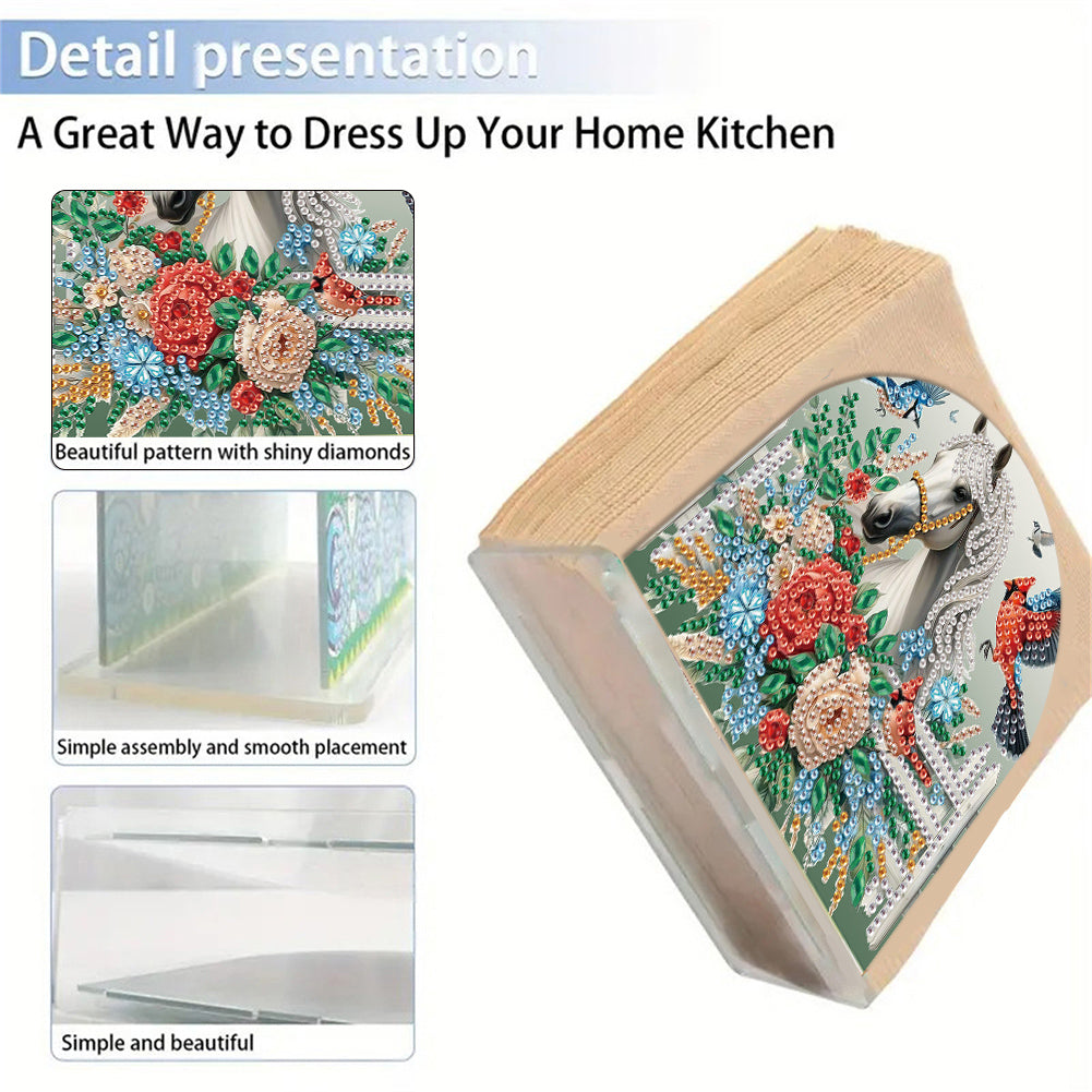 Animal Acrylic DIY 5D Diamond Art Painting Napkin Holder Set Home Decor (Horse)