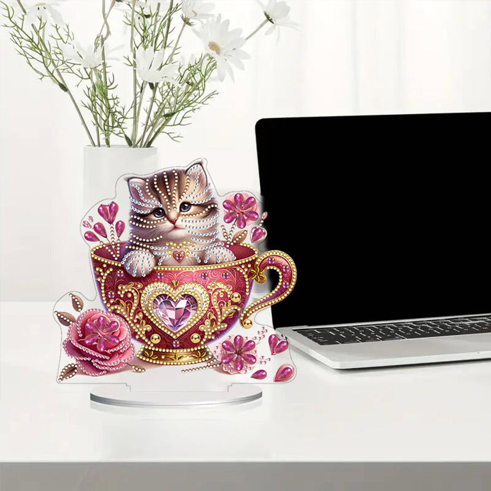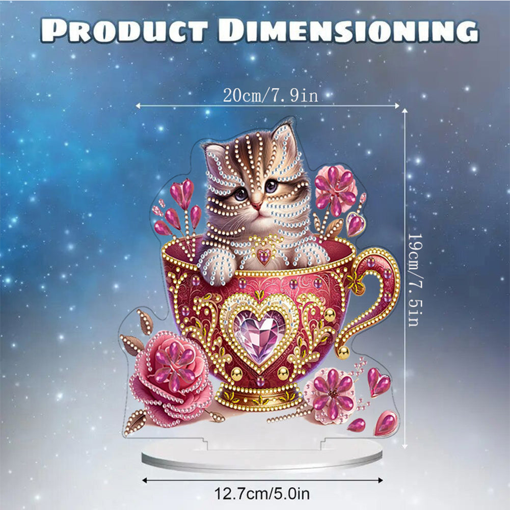 Cat in Cup 5D DIY Diamond Art Tabletop Decorations Cute Bedroom Table Decoration