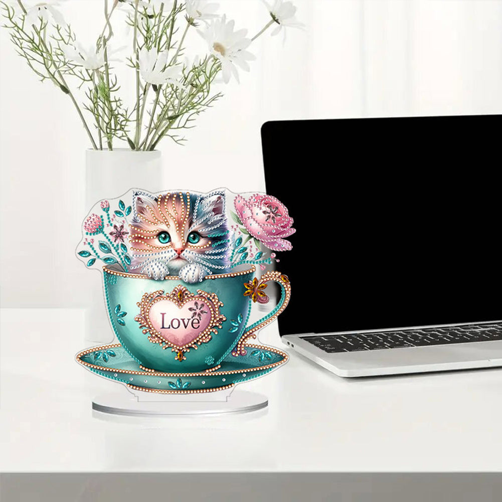 Cat in Cup 5D DIY Diamond Art Tabletop Decorations Cute Bedroom Table Decoration