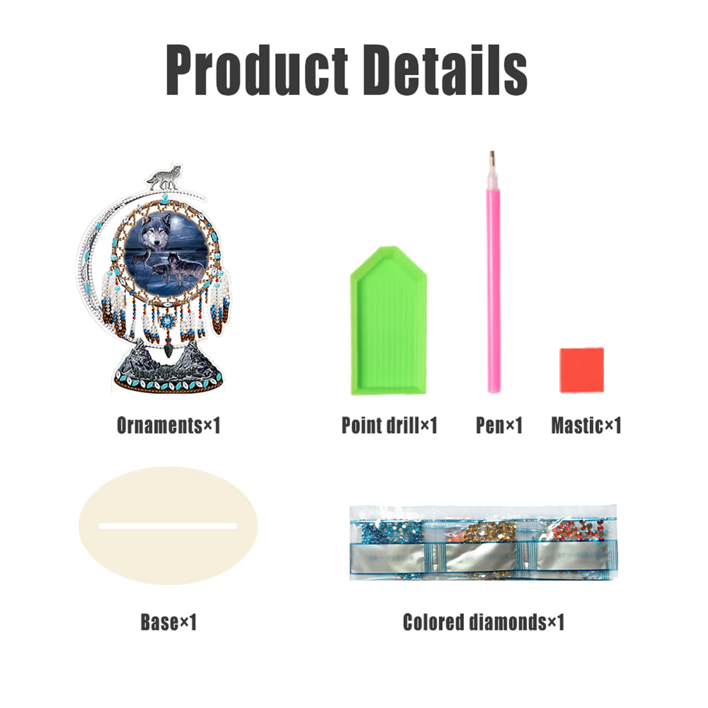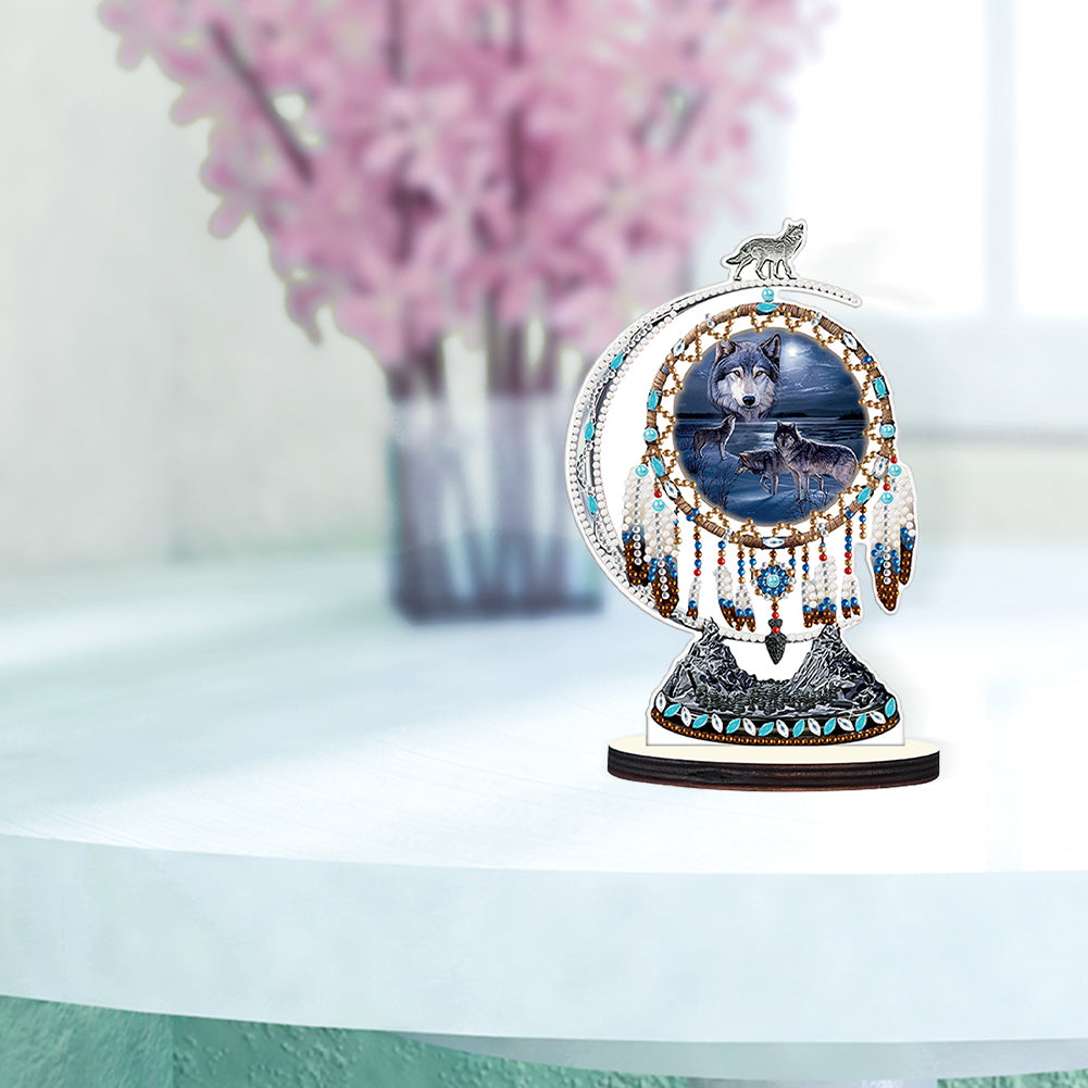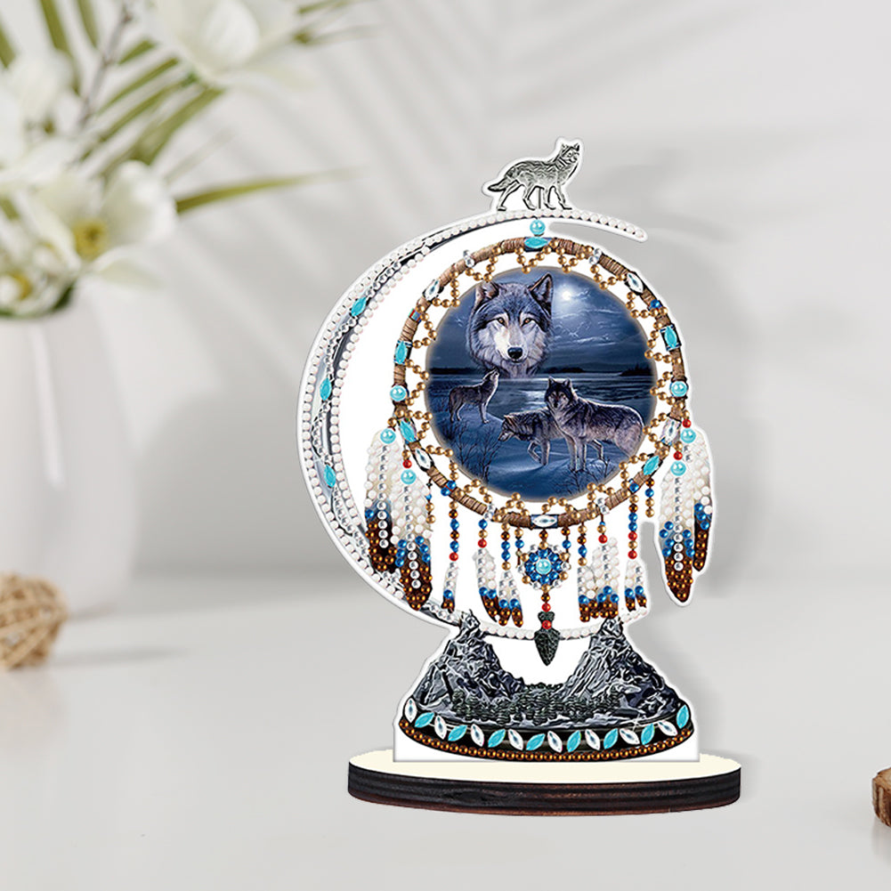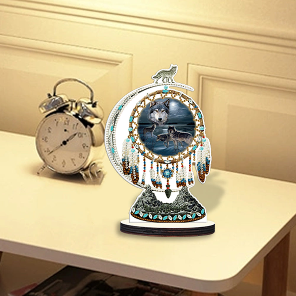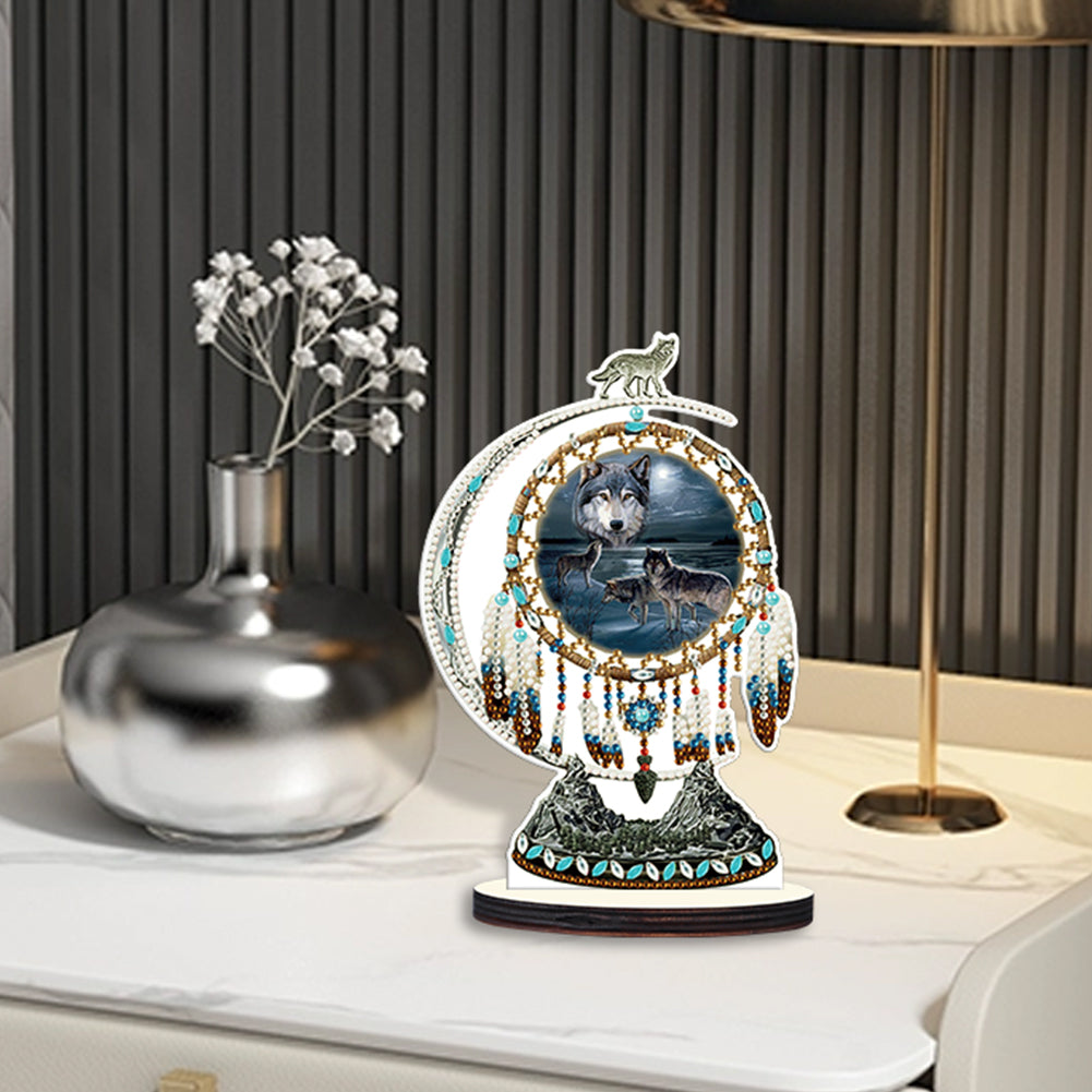 DIY Table Ornament Art Crafts Wooden Desk Diamonds Wolf Kids Gift (BJ027)