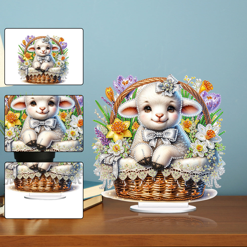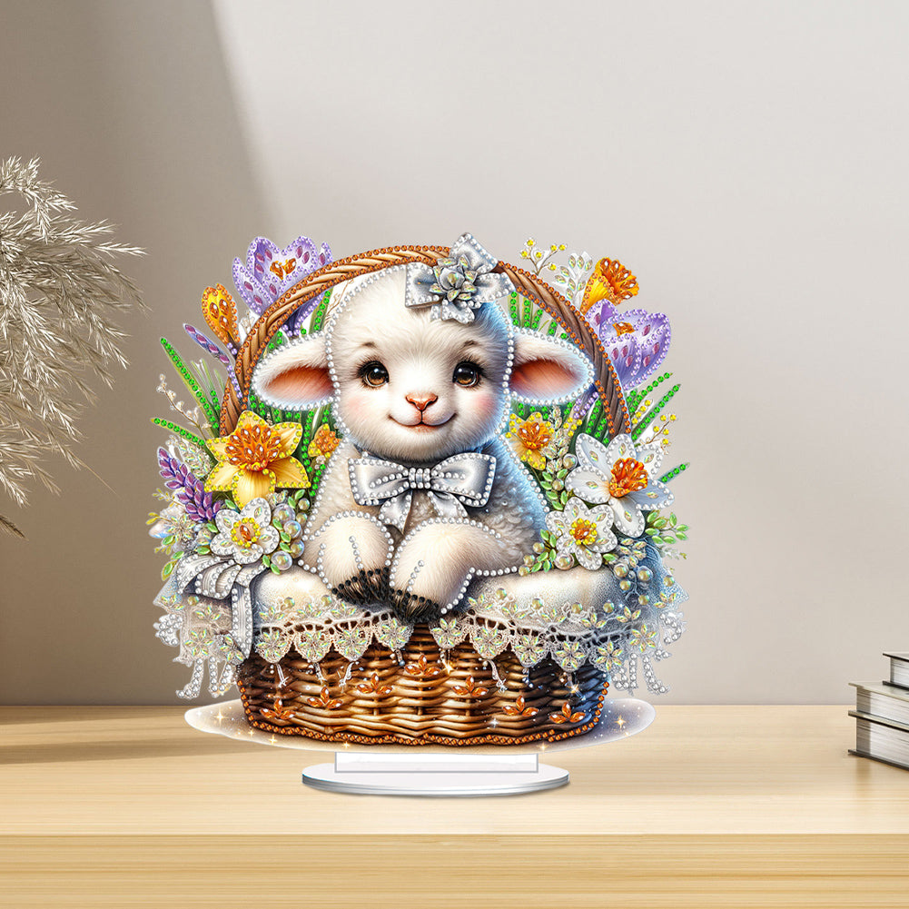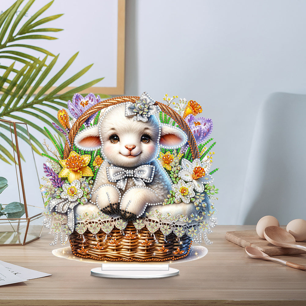 Easter Special Shape Desktop Diamond Art Kit for Adults Beginner (Basket Lamb)