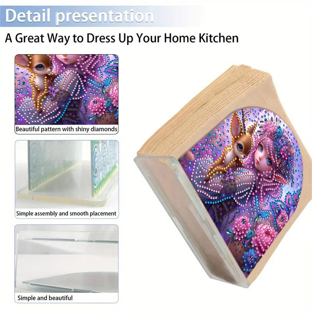 Elf Girl Acrylic DIY 5D Diamond Art Painting Napkin Holder Set Home Table Decor