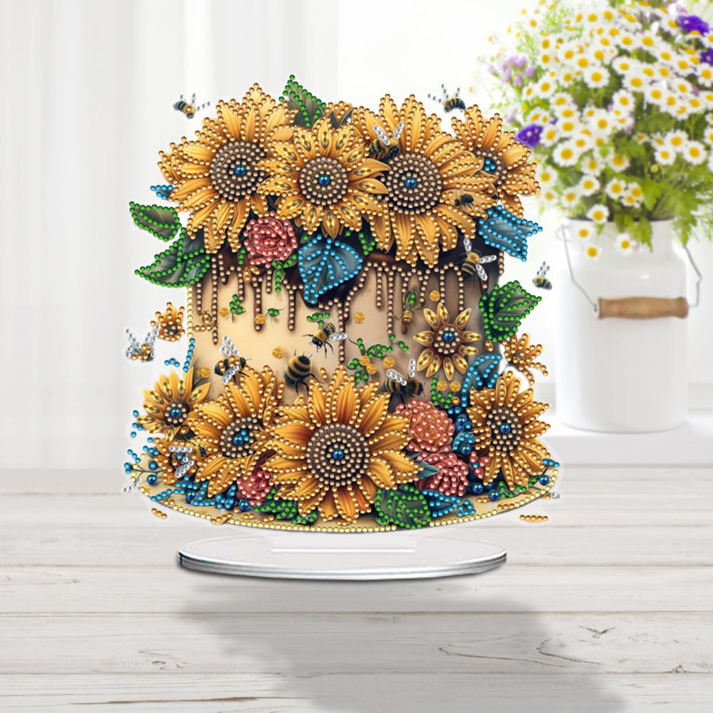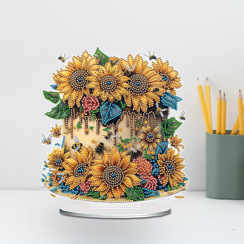 Flower Double Sided Effect Table Top Diamond Painting Ornament Kit (Sunflower C)