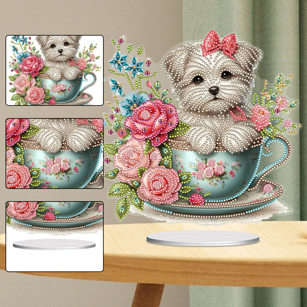 5. After the drilling is completed, apply double-sided tape to the bottom of the ornament, tear off the double-sided tape, insert it into the base.