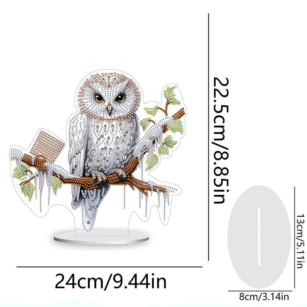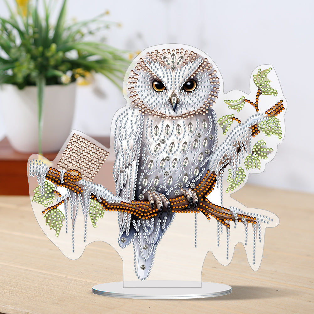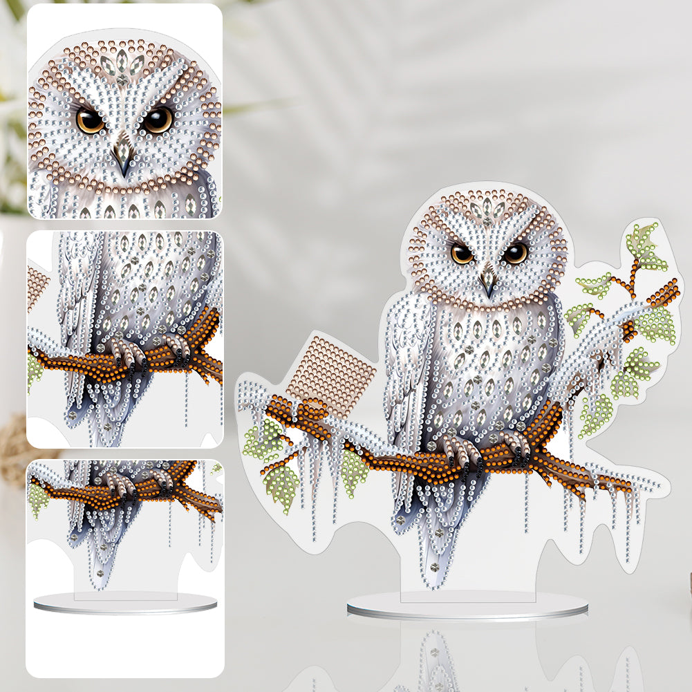 White Head Owl Special Shape Desktop Diamond Art Desktop Decor (Owl on Branches)