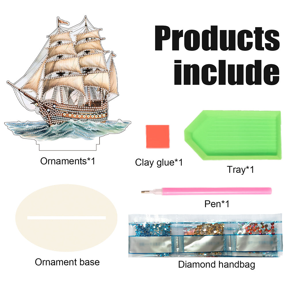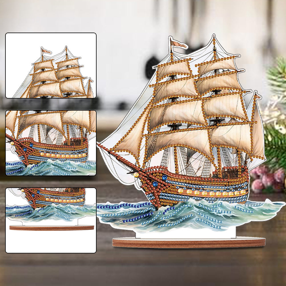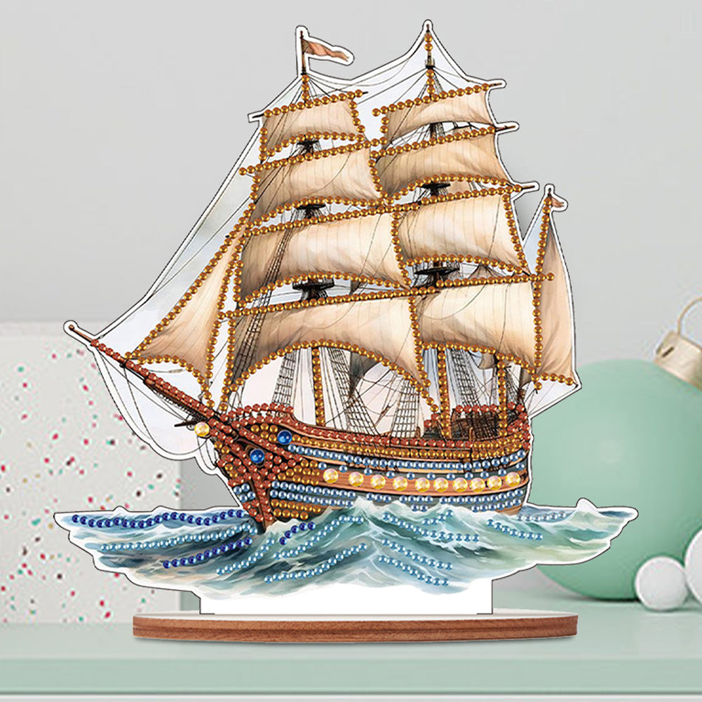 Wooden Sailboat Diamonds Painting Desktop Decor for Table Office Home Decor (#1)