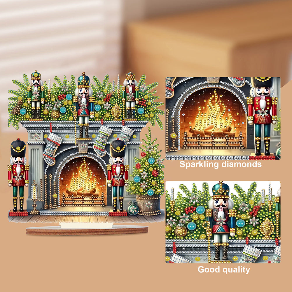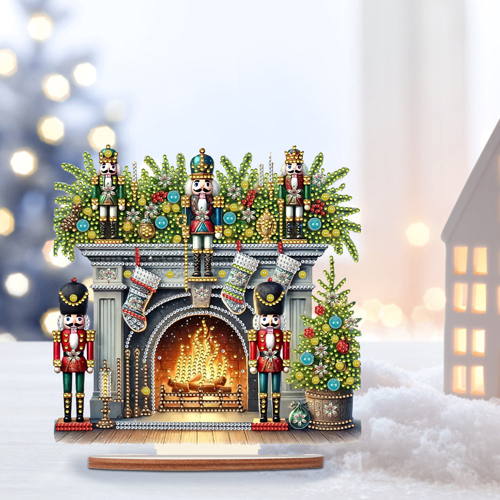 Wooden Special Shaped Fireplace Nutcracker Diamond Painting Tabletop Ornaments