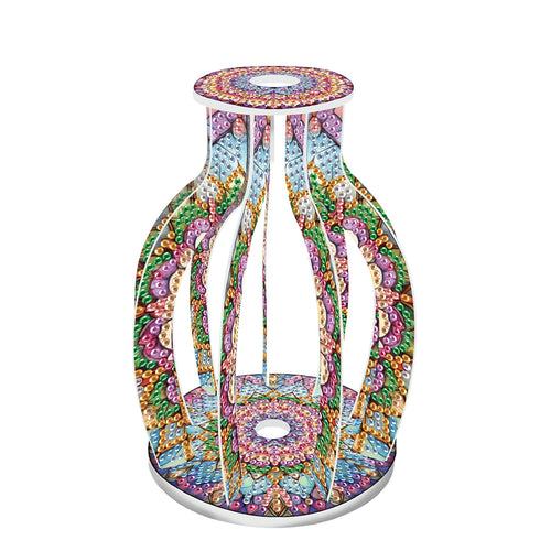 Acrylic Wood Colorful Pattern Diamond Painting Flower Vase for Home Office Decor