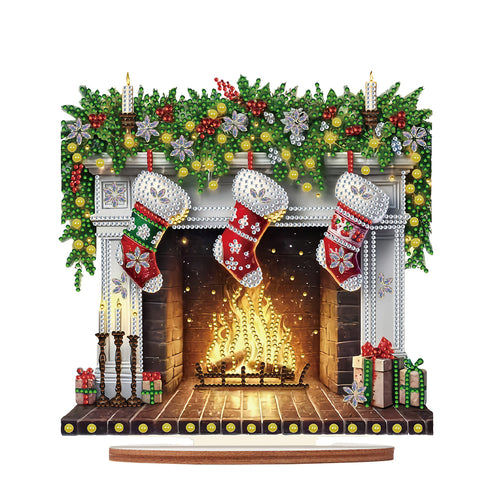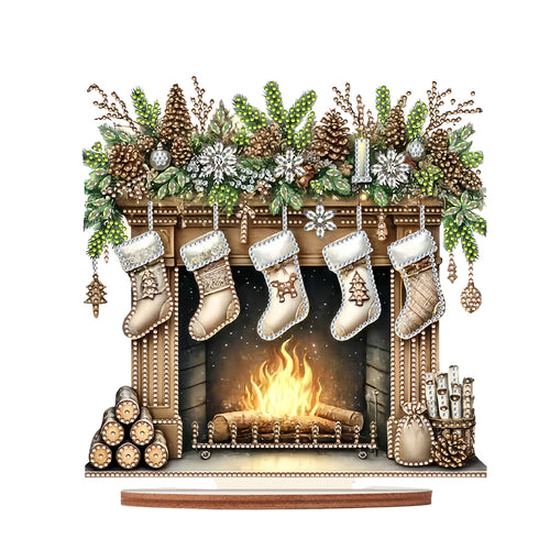 Wooden Special Shaped Fireplace White Stockings Diamond Painting Table Ornament