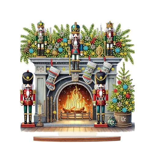 Wooden Special Shaped Fireplace Nutcracker Diamond Painting Tabletop Ornaments