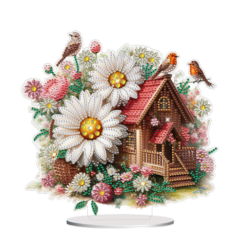 Daisy Cottage Acrylic Special Shape DIY Diamond Painting Desktop Ornaments