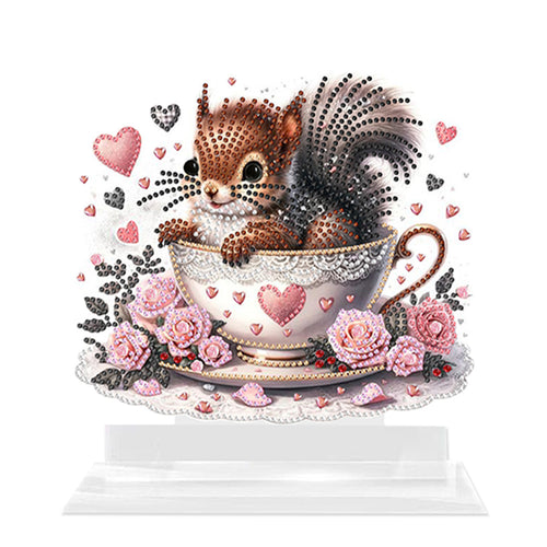 Acrylic Squirrel In Cup Table Top Diamond Painting Ornament Kits for Home Decor