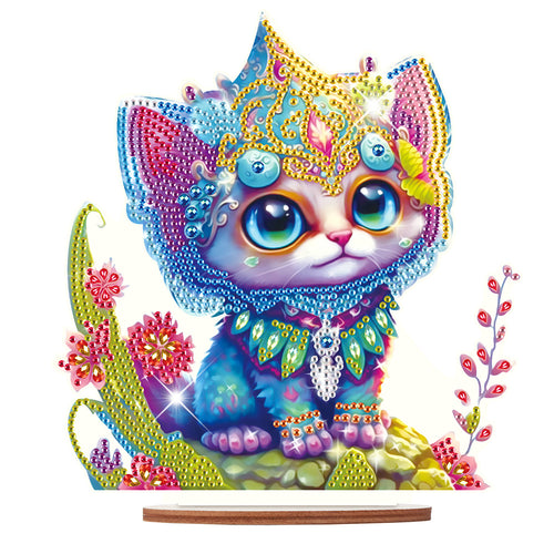 Wooden Round Diamond Painting Desktop Diamond Art Table Decor (Colourful Cat)